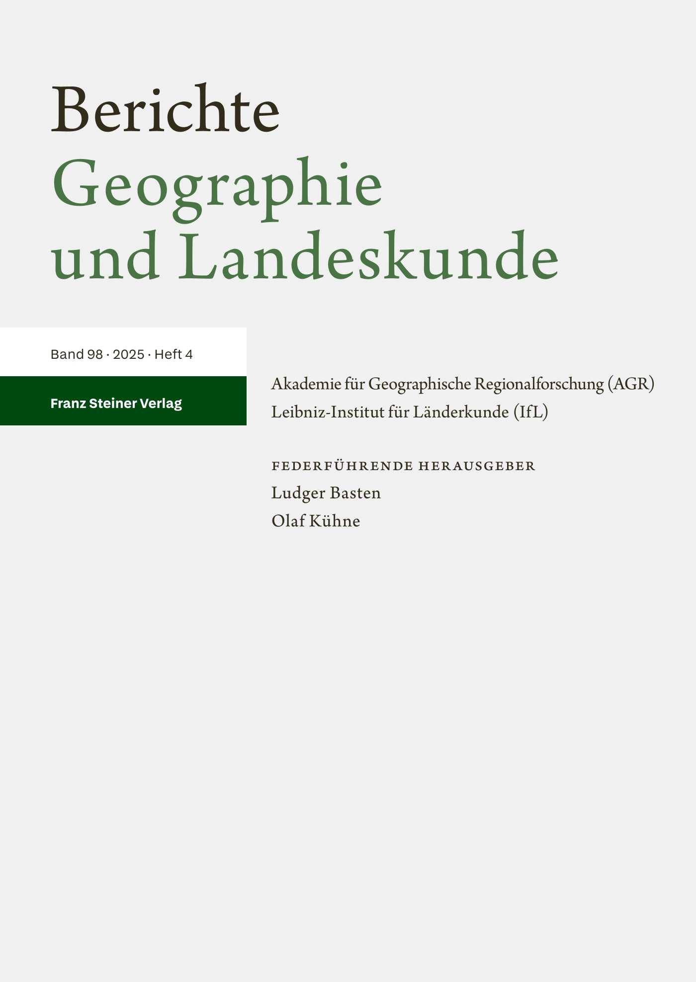For institutions: Do you wish to subscribe to Berichte. Geographie und Landeskunde? Please get in contact with us and write to us here: